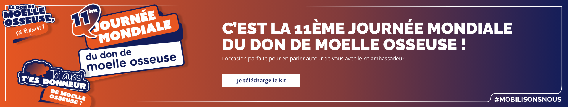 Envie de faire connaître le don de moelle osseuse autour de vous ? D’envoyer un message à votre entourage ? De partager nos vidéos et publications ? Toutes vos initiatives sont bonnes pour sensibiliser de nouveaux donneurs.